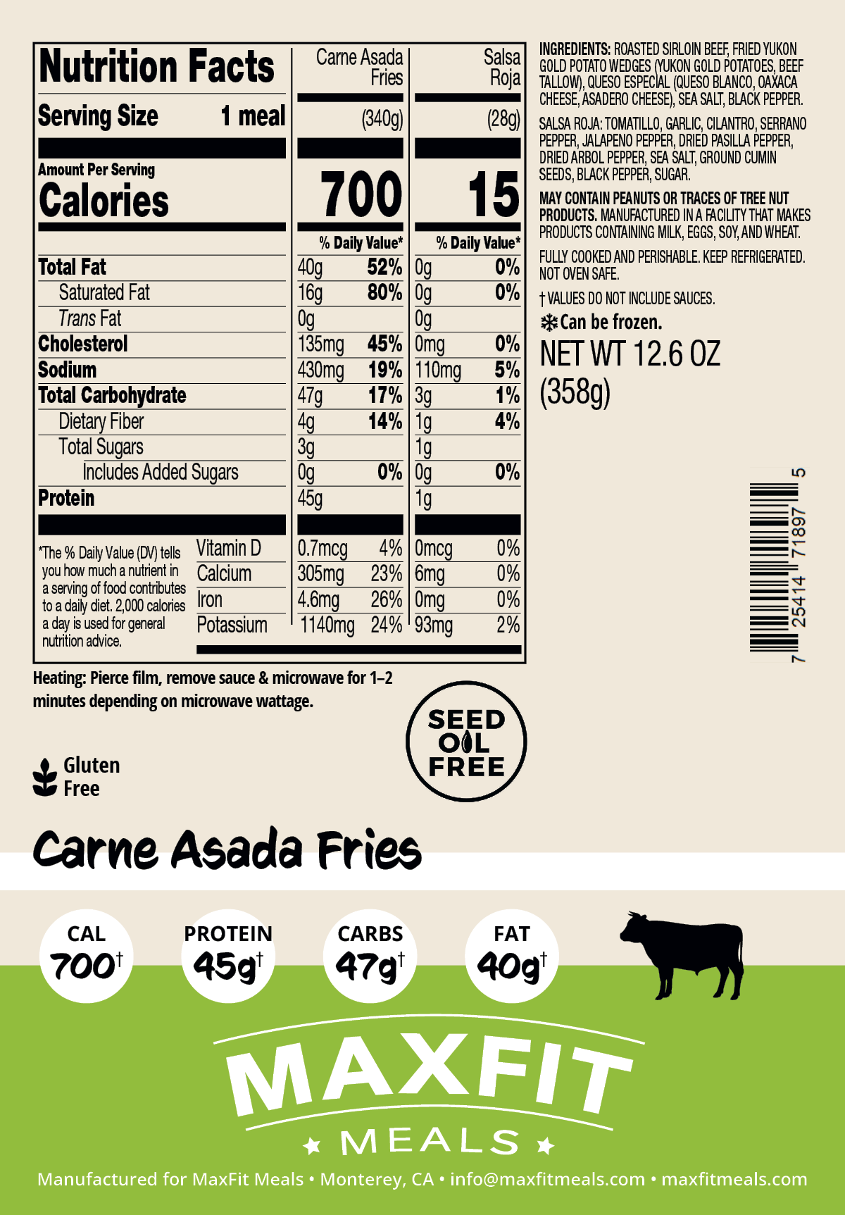 IngredientsRoasted Beef Sirloin, Fried Yukon Gold Potato Wedges (Yukon Gold Potatoes, Beef Tallow), Queso Especial (Queso Blanco, Oaxaca Cheese, Asadero Cheese), Sea Salt.