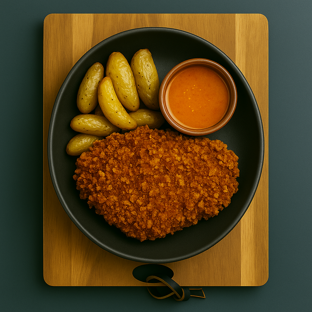 Crispy all-white-meat chicken coated in our house Nashville spice blend and flash-fried in beef tallow for authentic flavor, served with roasted rosemary potatoes. Big flavor, clean oil, zero compromise.